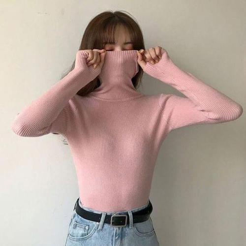 [에이치플러스몰]여자 6컬러 하프넥 목폴라 캐주얼 골지티 니트티셔츠
