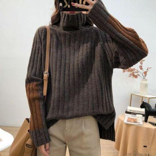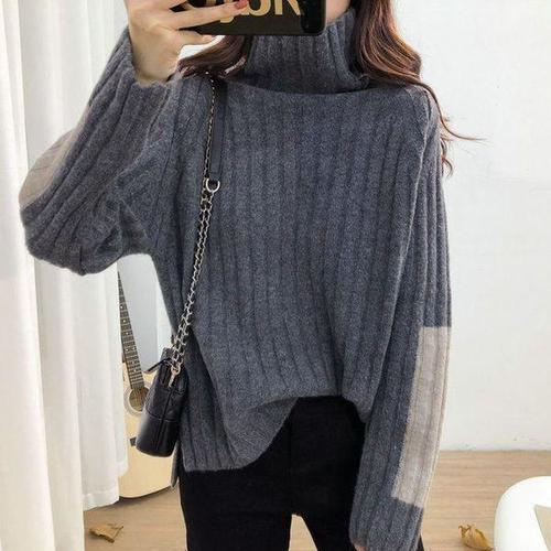 [에이치플러스몰]여성 목폴라 골지 니트스웨터 스트랩 오버핏 데일리룩