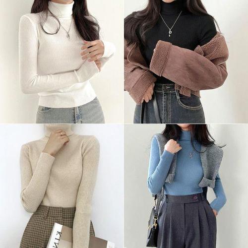 여성 기본 이너 니트 목폴라 슬림핏 골지 하이넥 티셔츠 5색 WFKPZ0M
