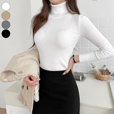 여리진 여성용 포근 따뜻! 니트 스판 목폴라 터틀넥 골지 긴소매 티셔츠