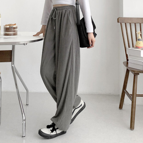 가비진 여성용 골지 일자 와이드 핀턱 밴딩 팬츠