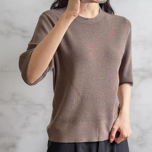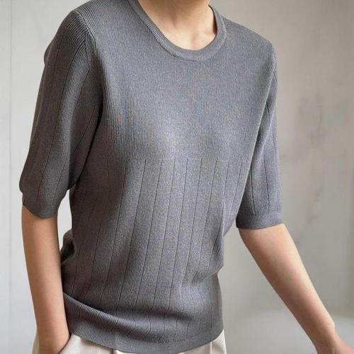 [다잇템]여성 색상 잔골지 반소매 클래식 라운드 니트