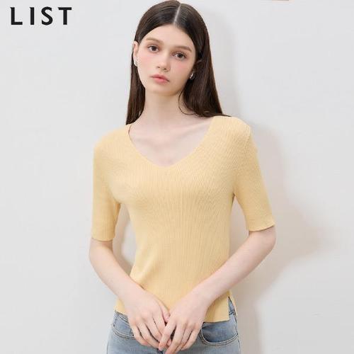 [리스트(LIST)] 찰랑슬림 골지 브이넥 반팔 니트 (택가격: 118000원)