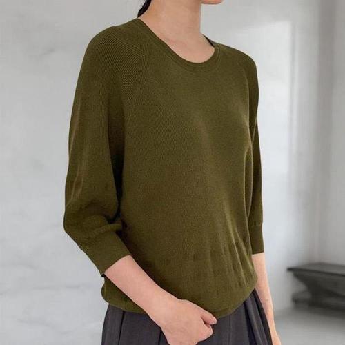 [다잇템_패션]여성 라글란 디자인 라운드 반소매 잔골지 니트