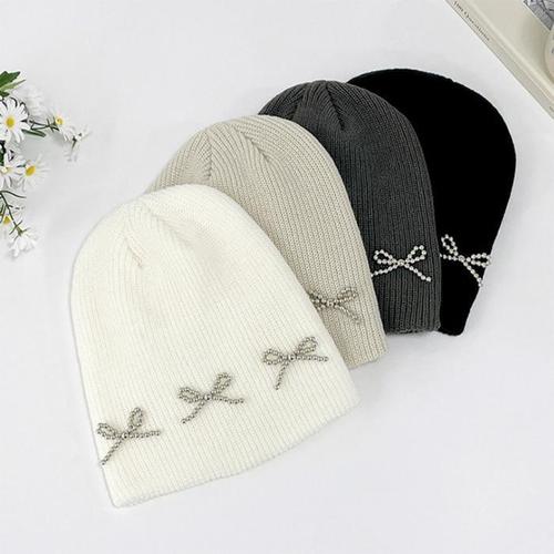[다잇템]여자 스터드 리본비니 발레코어 골지 미색 모자 (13305995A)