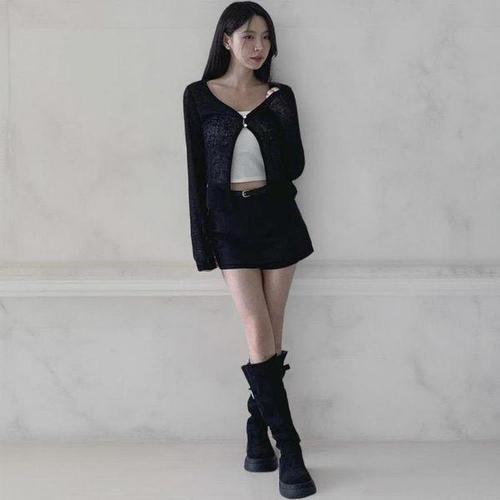 [다잇템]여성 골지 슬릿 비침 단추 키치무드 롱가디건