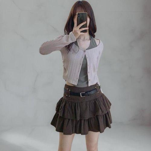 [다잇템]여성 슬림핏 홀터네크 골지 귀여운 코디 카디건