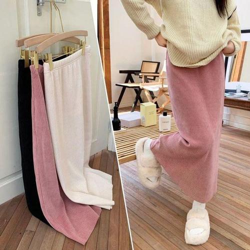 [에이치플러스몰]여성 가을겨울 신축성 부드러운 골지 뒷트임 롱스커트