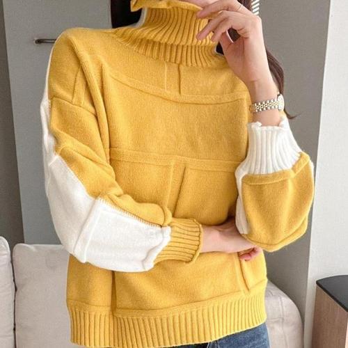 [다잇템]여자 골지 하프배색 패턴 FW 터틀넥 블록 니트_3 (16678874A)