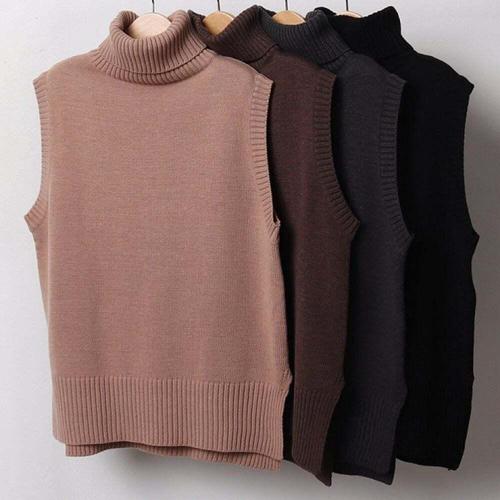 [오너클랜]인기상품 여자용 골지 하이넥 트임 니트 조끼 오버핏 캐주얼웨어 [WFLLJ4O_260305]