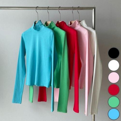블레스유 여성 소프트 기본 베이직 부드러운목티 터틀넥 목폴라 골지 긴팔티 간절기 단독 이너 색상선택