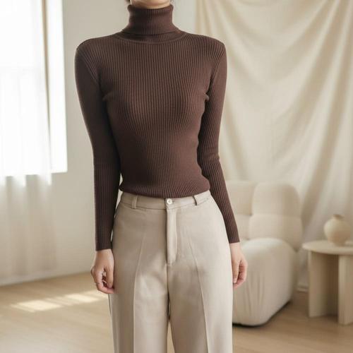 [옷자락] 여성 슬림핏 골지 터틀넥 니트 티셔츠 데일리 오피스룩