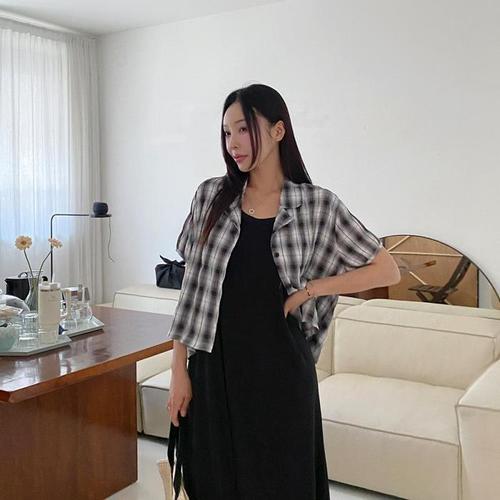 [다잇템]여자 SS 롱원피스 박시핏 격자 골지 탱크 세트 (16253222A)