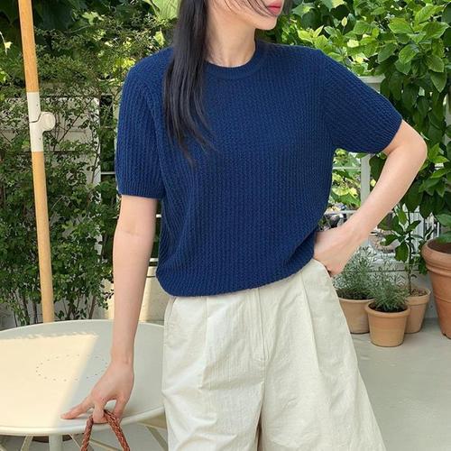 [다잇템]여자 SS 골지 민무늬 썸머 면원단 반소매 니트 (16226676A)