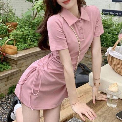 [신상오픈런]여성 미니 원피스 슬림핏 카라넥 골지 디자인 트임 스타일