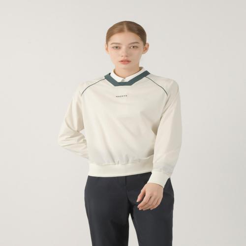 헤지스 골프 여성 베이지 여성 우븐 브이넥 맨투맨 (HWTS5C614I1)