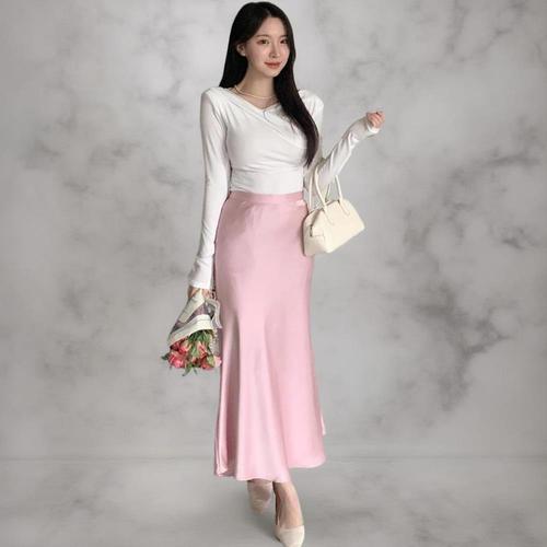 여성 인어공주 베이직 새틴 뒷밴드 롱 스커트