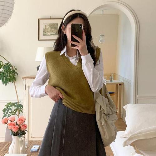 [다잇템]여자 교복st 조끼 FW V넥 스웨터 조끼 (23532259A)