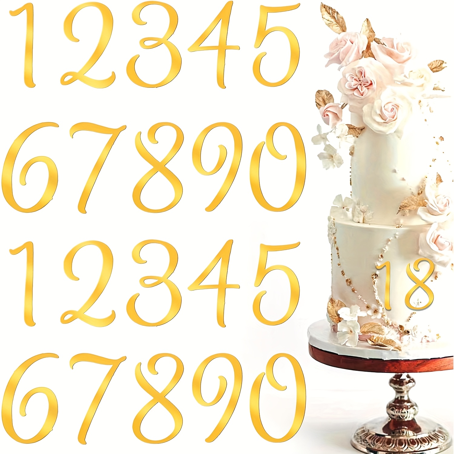 TEMU 10개 골드 반짝이 아크릴 숫자 케이크 토퍼 0-9 숫자 케이크 토퍼 DIY 수제 케이크 사인 장식 생일 파티 결혼 기념일용