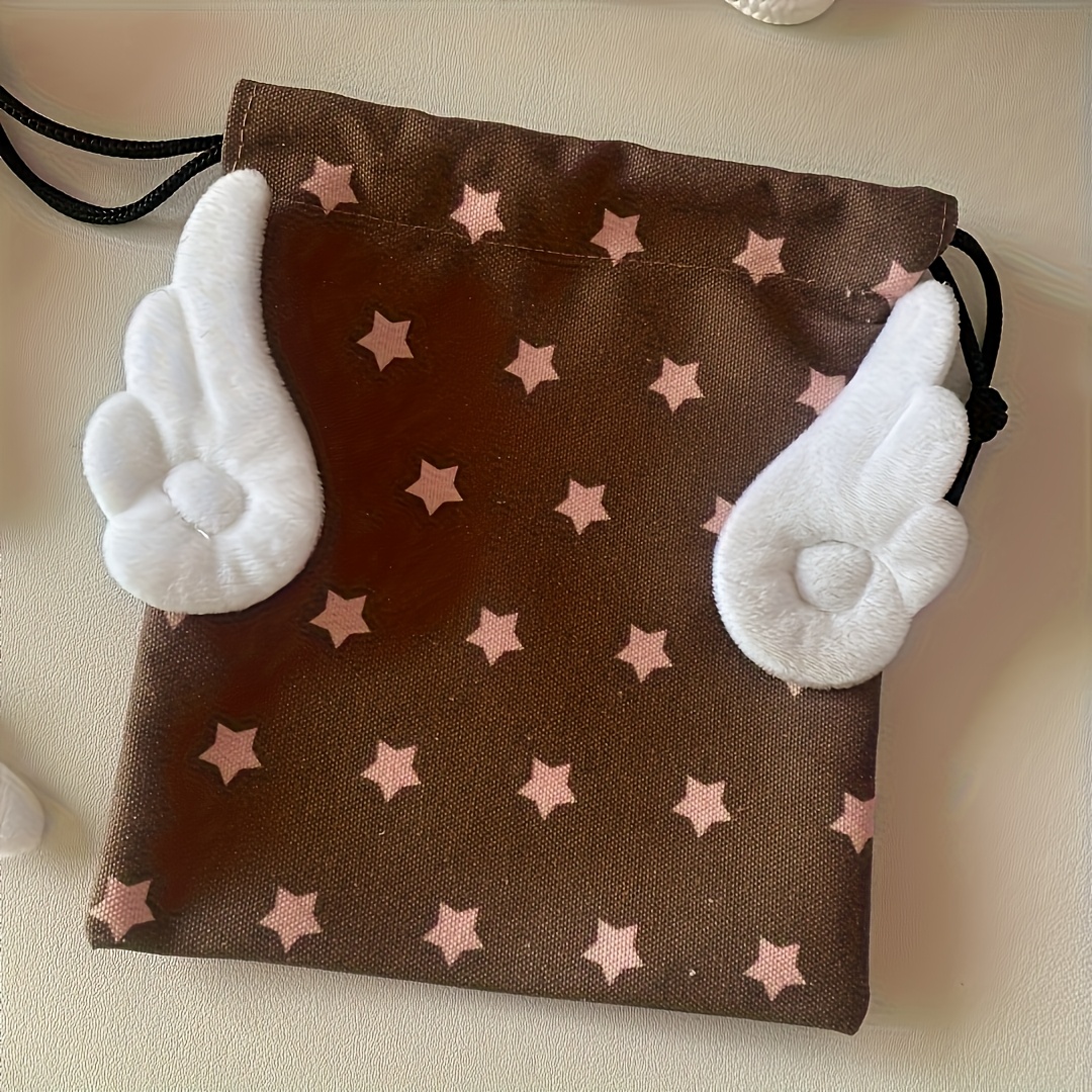 TEMU 귀여운 플러시 날개와 별 보관 파우치 - 부드러운 폴리에스터 지퍼 포켓, 주얼리·화장품·문구용 - 재미있는 구름과 별 무늬 먼지 방지 여행 수납 가방
