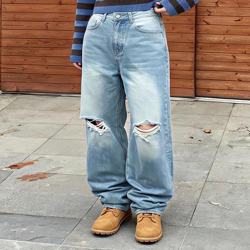 [디프]포멀 남자 빈티지 구제 찢청 와이드핏 벌룬 워싱 데님 팬츠 [DIFD_8006]