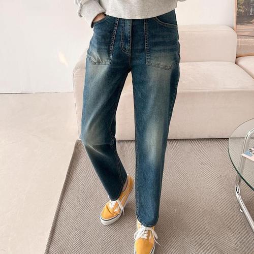[다잇템]여자 그런지 큰사이즈 구제포켓 속밴딩 청바지 (29986990A)