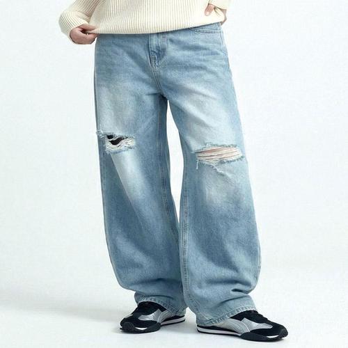 [네스파]스텝 남자 빈티지 구제 찢청 와이드핏 벌룬 워싱 데님 팬츠 [NSPD_3006]