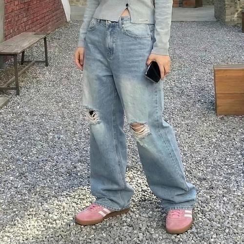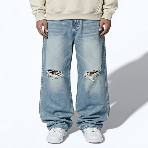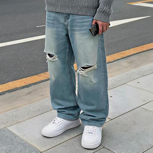 배기핏 일자 아템 배기 청바지 워싱 구제 커브 하이웨스트 편한 진 팬츠 남성용 캐주얼 빈티지 스포M1