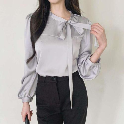 [다잇템]여성 모던시크 리본 보우 시폰 블라우스