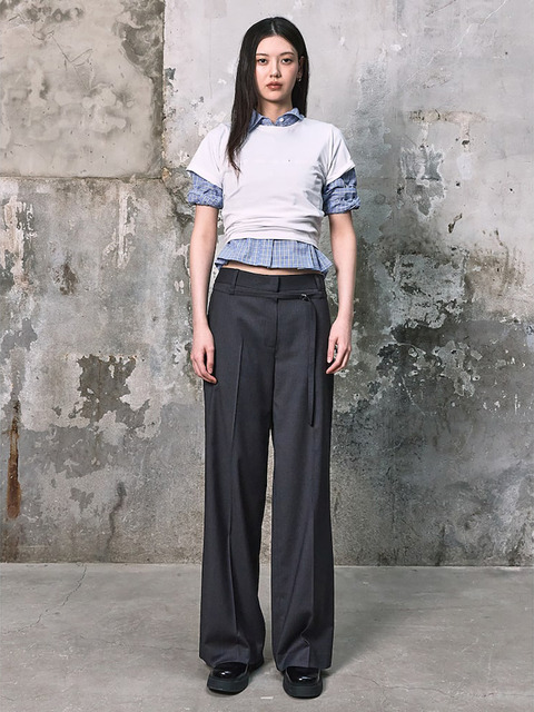 [구호플러스] Belted Semi Wide Slacks PantsAsh Stripe (KE6221M024)