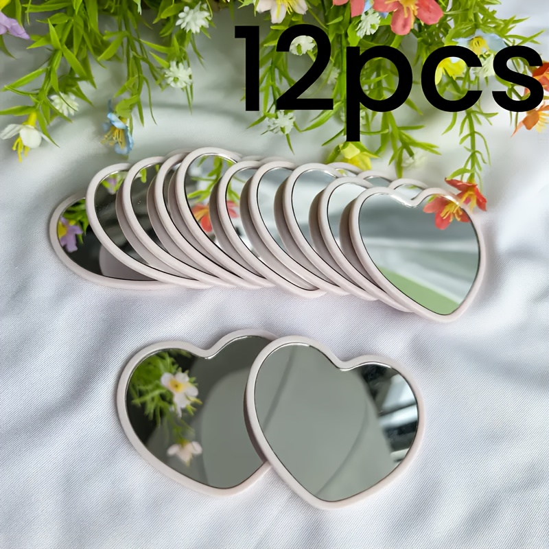 TEMU 12/20개 하트형 미니거울, 광택마감, 플라스틱프레임, 탁상용, 무향, 꽃테이마, 휴대용, 전기 필요없음 | 세련된 탁상장식 | 내구성 있는 귀여운 컴팩트 거울