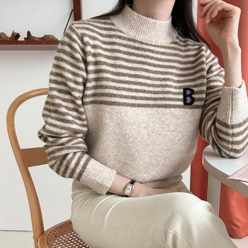 [샵앤][샵앤] 국내산 여성 반목 부분 단가라 터틀넥 니트티셔츠 21DS-WKN-4002-오트밀