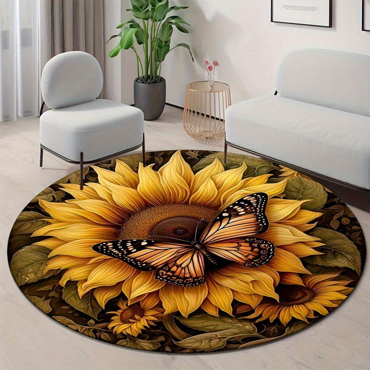 TEMU 1개 벨벳 매력적인 나비와 원형 매트 - 미끄럼 방지, 세탁 가능 거실 & 침실 장식용 도어매트, 바닥 액센트, 홈 입구 매트, 플로럴 패턴, 미끄럼 방지 뒷면, 부드러운 질감, 아늑한 홈 액세서리, 스타일리시 바닥 매트, 홈 데코레이터, 모던 홈오너