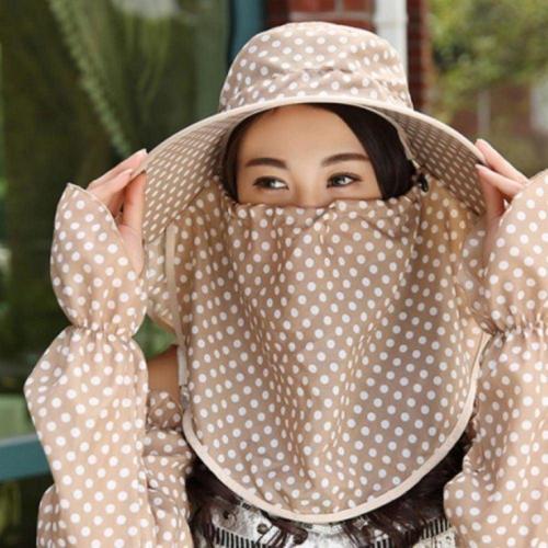 여성 후드형 썬캡 햇빛가리개 그늘막모자 등산 농사용 마스크일체형 여름모자