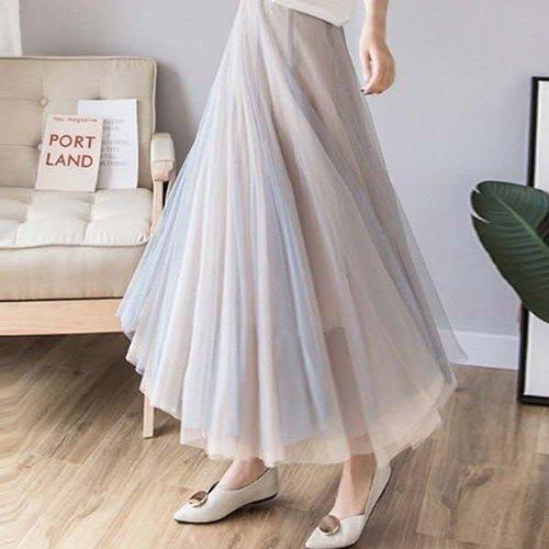 [모노무드]MNO 걸스 트렌드 나들이룩 베이직 우아한 예쁜 그라데이션 롱치마플레어라인 샤스커트