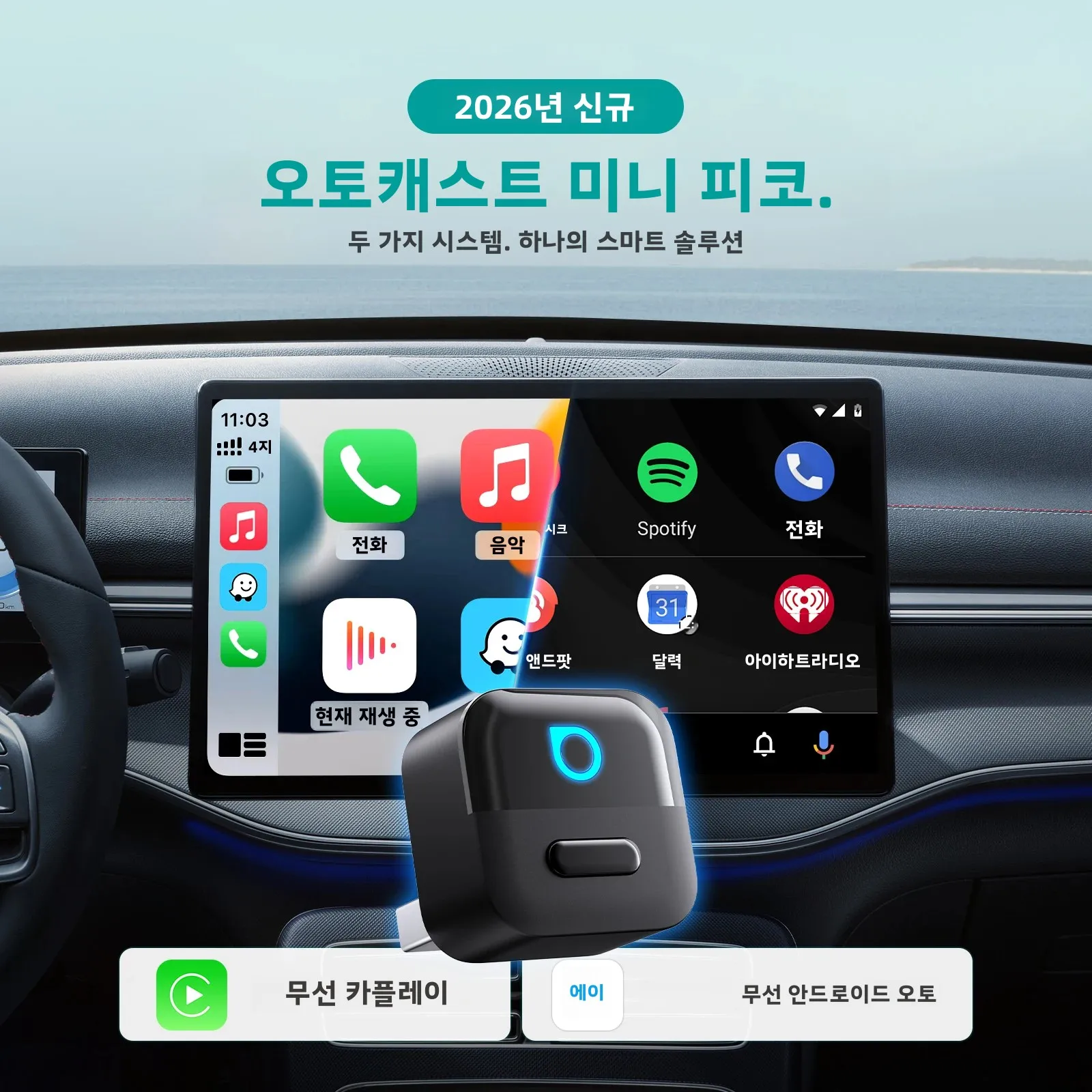 2in1 무선 CarPlay 동글 무선 안드로이드 오토 어댑터 AI 스마트 박스 유선 CarPlay가 있는 차량용 지능형 시스템