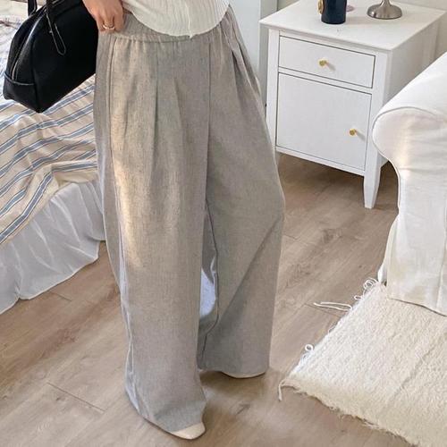[다잇템]여자 와이드핏 투핀턱 그레이 코튼 고무줄 바지 (14088826A)