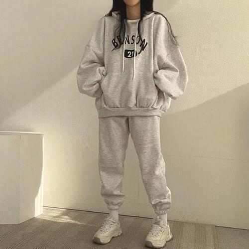 [셀러허브_여성트랜드패션]ONM 후드 셋업 츄리닝 긴팔 그레이 긴바지 세트 체육