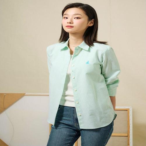 [빈폴레이디스][Essential] 옥스퍼드 스트라이프 레귤러핏 셔츠 애플그린 (BF5164E02K) .