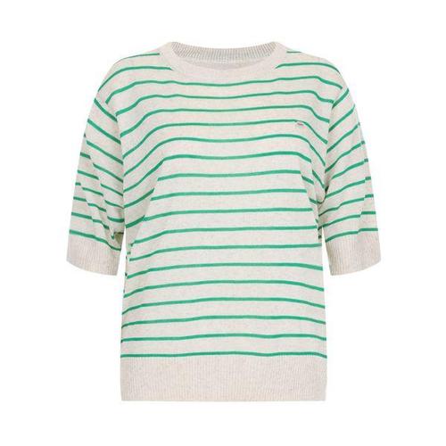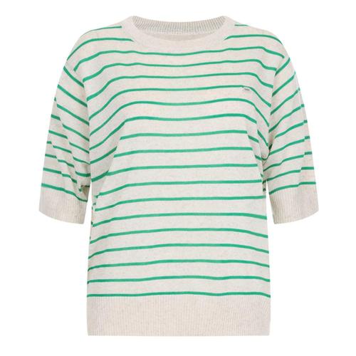 [샵앤][샵앤] 여성 라운드넥 단가라 반팔 여름 니트 티셔츠 FRB-WKN-20699-줄그린