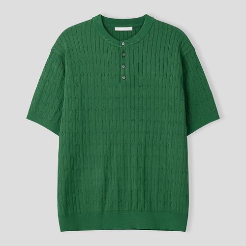 [리빌모아]남자 여름 케이블 단추 헨리넥 반팔 니트티 SG-KNH-Q002-그린