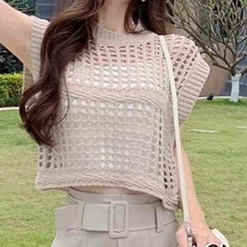 [셀럽하우스]그물 OBQG0767 크롭 베스트 라운드넥 조끼 여성 여름