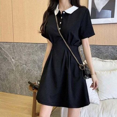 여성 반팔 카라 면마 원피스 버튼 포켓 무지 린넨원피스 허리밴딩 빅사이즈 여름 중년