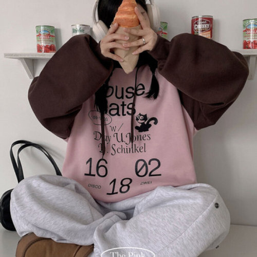 더핑크 / 펀코 오버핏 프린팅 배색 나그랑 기모 후드티