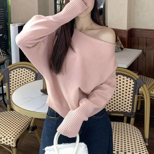 여자 볼드숄더 기모노핏 입술넥 소매 니트