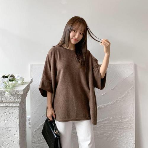 [다잇템]여자 오버핏반팔니트 기모노핏 레이어드용 니트 (23547990A)