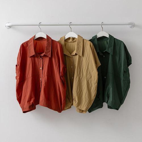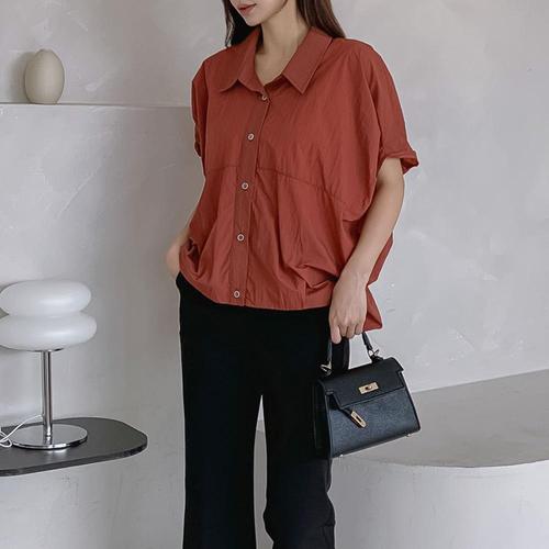여성 기모노핏 핀턱 카라넥 반소매 나일론 셔츠