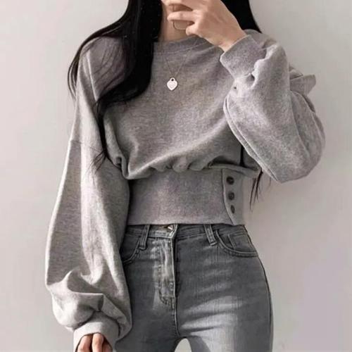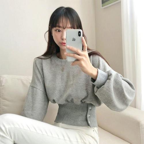 [다잇템]여성 시보리 기모노핏 허리단추 힙무드 맨투맨 (41091084A)