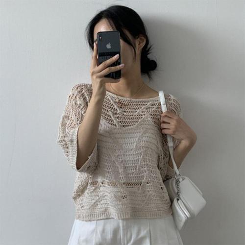 여성 기모노핏 입술넥 반소매 스카시 펀칭