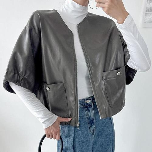 [다잇템]여자 주머니 박스핏 기모노핏 FW 가죽재킷 자켓 (41291410A)